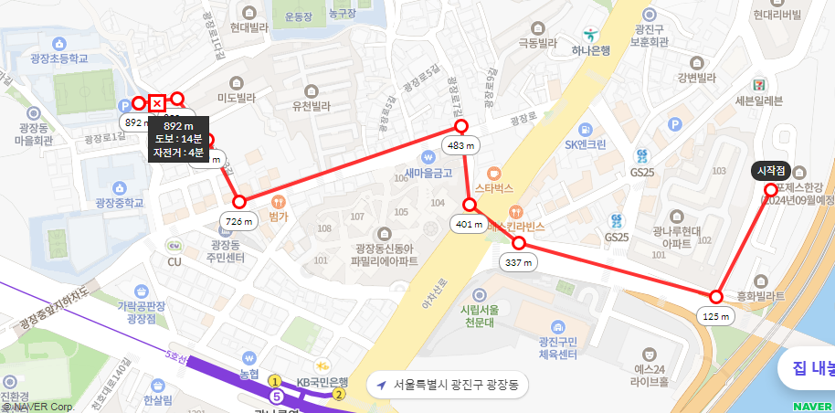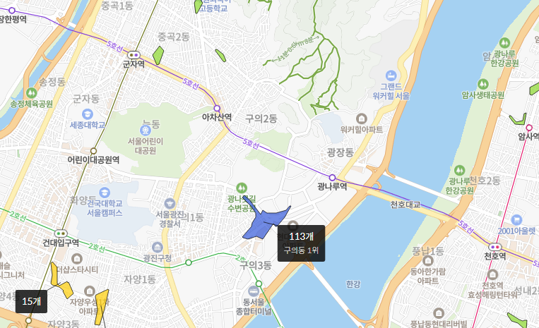 위치는 서울시 광진구, 지하철 5호선 광나루역 근처다.