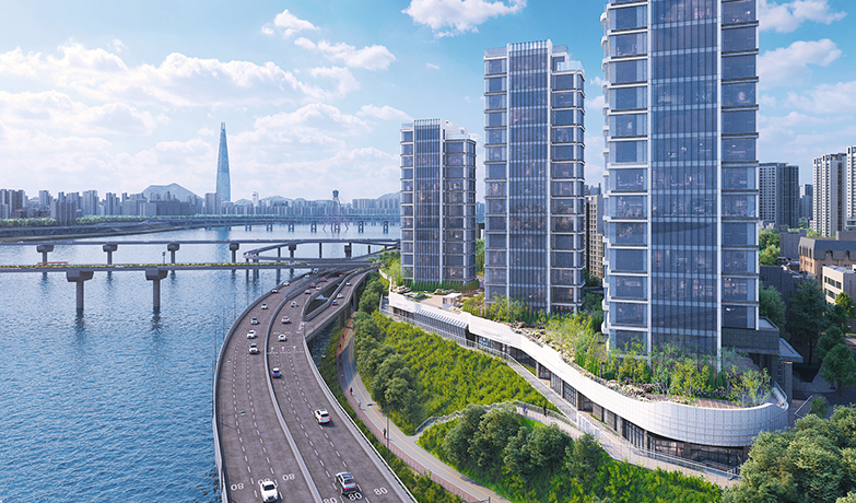 광장동 한강변을 따라 초고급 아파트가 분양한다.