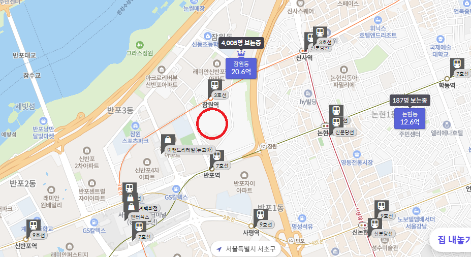 서초구 잠원동이면 정말 모두가 한 번쯤은 살아보고 싶은 동네가 아닐까 싶네요.