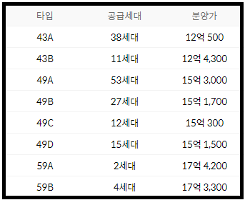 59타입은 심지어 총 6세대 밖에 없습니다. 게다가 일반분양은 절반이라 3세대이니 운이 좋아야겠네요.