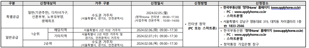 - 특별공급: 2024년 2월 5일 (월) 09:00 ~ 17:30