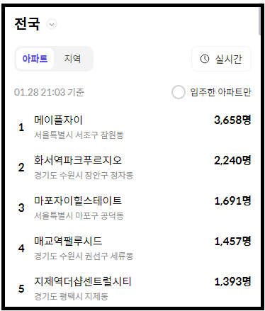 1월 26일 입주자모집 공고가 뜬 이후 지금 며칠 째 호갱노노 1위를 달리고 있는 메이플자이입니다.