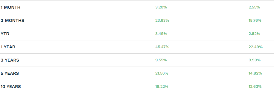 이 나스닥의 상위 100개 기업의 지수를 추종한다. 나스닥이 기술주의 비중이 높아서 아무래도 최근 주가상승률이 좋았다.