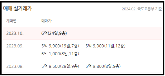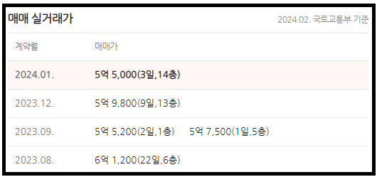 15평형은 5억 후반에서 6억 초반을 형성한다.