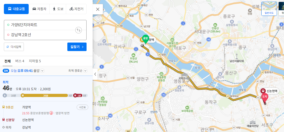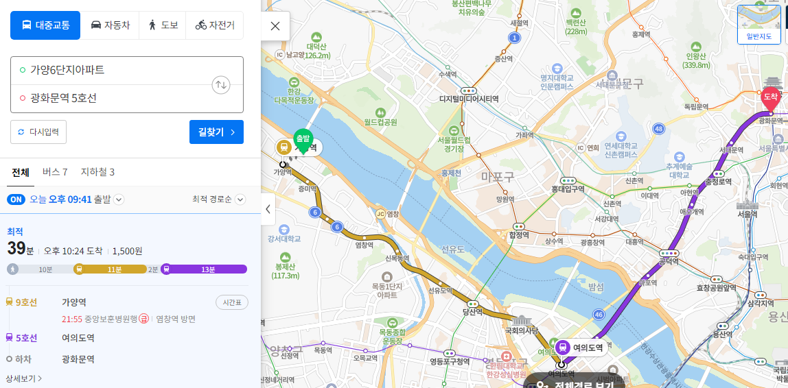 여의도까지는 21분이면 추분하고 도어투도어 30분이면 가능해 보인다.