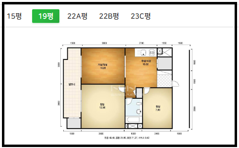 공급평형은 15평, 19평, 22평으로 소형평수 위주지만 가양강변3단지보다는 큰 편이다.