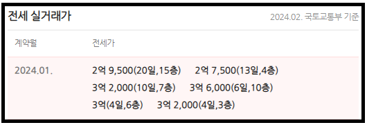 15평 전세 실거래는 1억 후반에서 2억 초 중반 까지다.