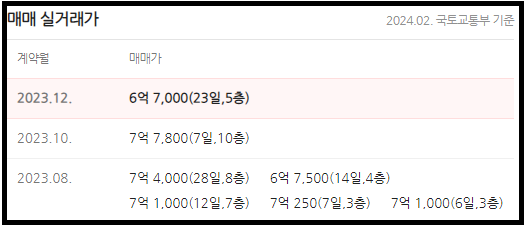 20평형은 6억 후반에서 7억 초반을 형성하고 있다.