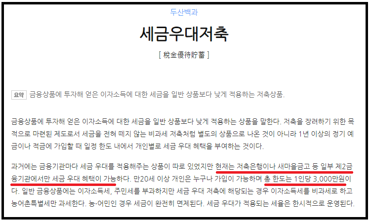 거기다가 세금우대를 받을 수 있는 세금우대저축예금이 무엇인지, 사람들이 헷갈리는 비과세예금과의 차이를 알아보겠다.