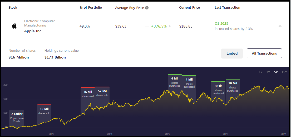 하지만 버크셔 해서웨이의 경우 2021년 2022년 꾸준히 매입하다가 2023년부터는 주식을 매도하고 있다.
