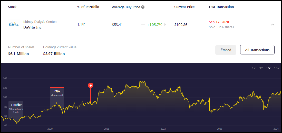 버크셔 해서웨이는 2020년 9월에 마지막 매도를 한 이후로는 추가적으로 해당 종목에 대한 거래를 진행하지는 않고 있다.