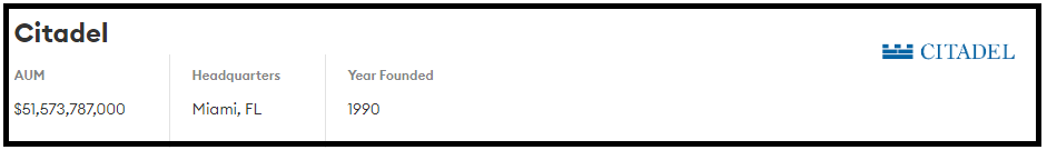 1990년 케네스 그리핀 (Kenneth Griffin)이 설립하고 여전히 CEO를 유지하고 있다.