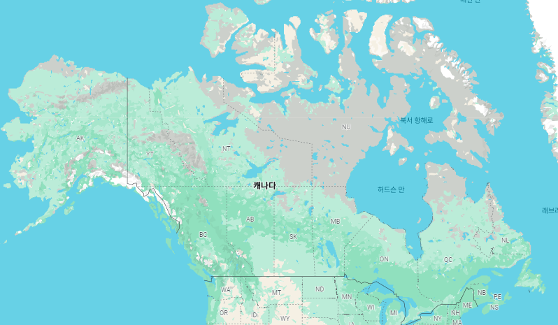 대신 육지의 면적으로만 따지면 캐나다 보다 더 넓다.
