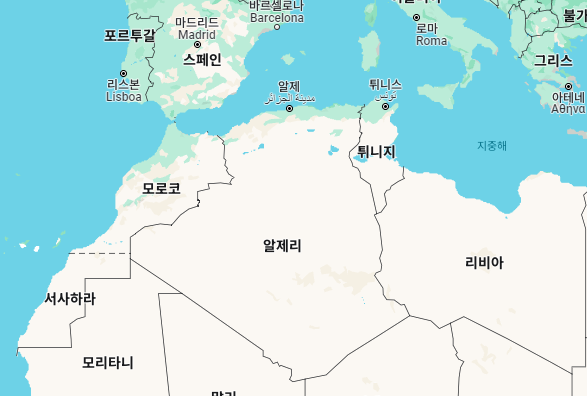 유럽과 상당히 붙어있다. 과거 프랑스의 식민지여서 프랑스에 알제리계 사람도 많다.
