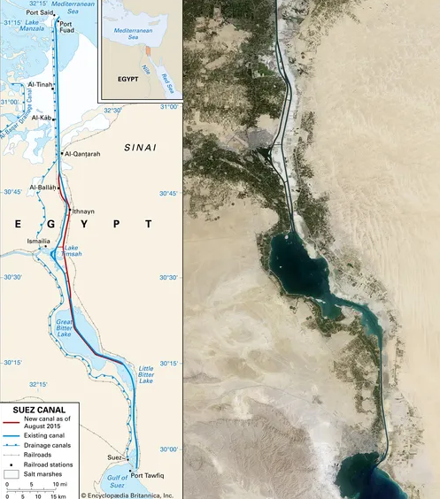 수에즈 운하는 이집트에 위치한 운하로 1869년에 완공되었다.