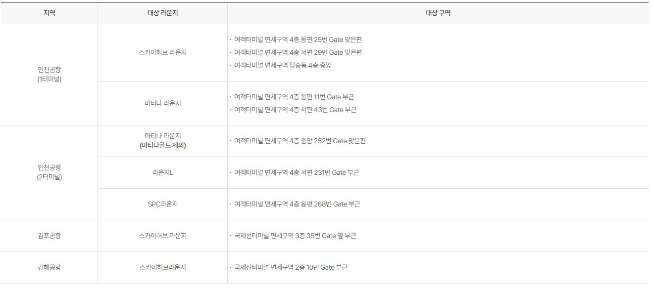 이용가능한 라운지 리스트는 아래를 참조하자.