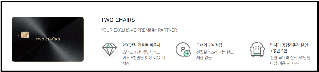 이 카드는 바로 우리카드에서 발급하는 프리미엄 카드인 'Two Chairs' 다.