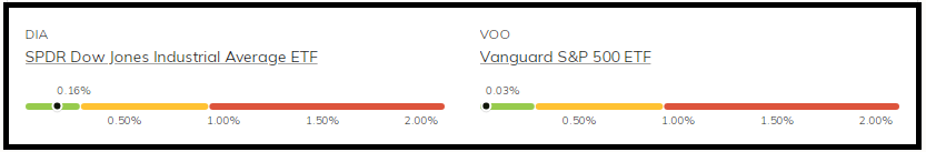 VOO는 0.03%인데 반해, DIA는 0.16%다.