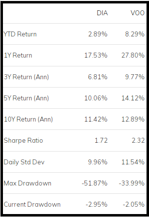그래서 DIA와 VOO를 비교해 보도록 하겠다.