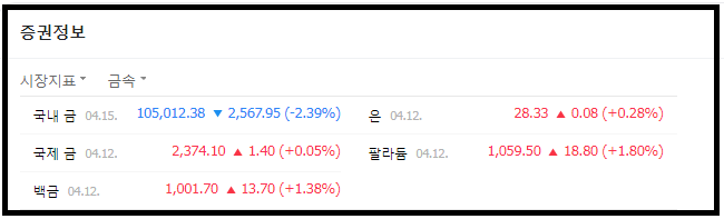 금속 관련 시세를 조회하면 금과 은까지는 기본으로 나오는 게 익숙하다.