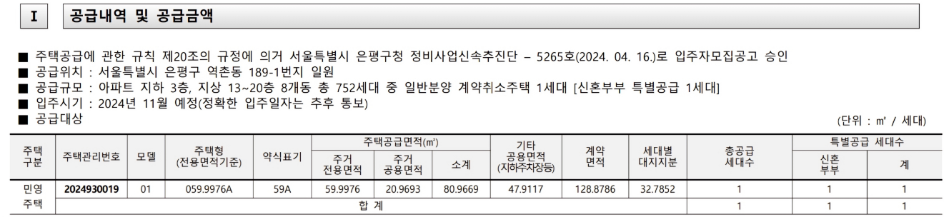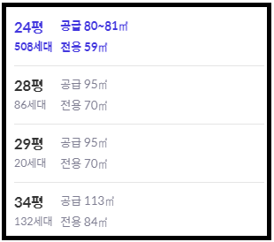 기본적으로는 20평형대 위주로 구성이 된 아파트다. 무순위로 나오는 아파트도 24평형 (전용 59 제곱)이다.