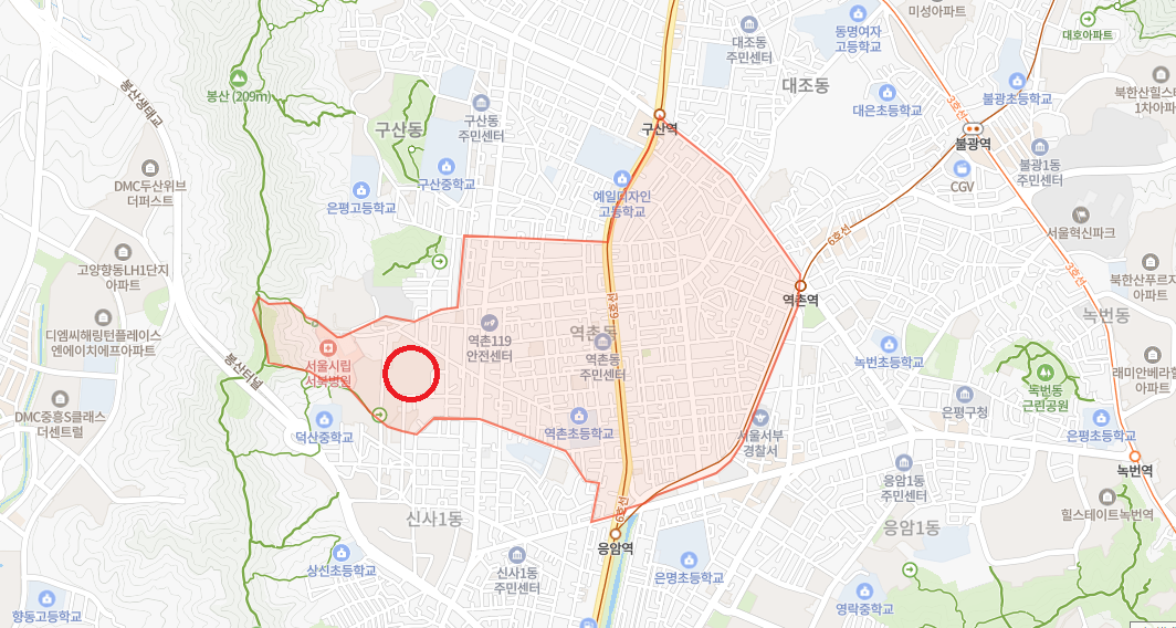 역촌동이지만 역촌역은 상대적으로 멀고 지하철 6호선 응암역이 가장 가까운 지하철역이다.