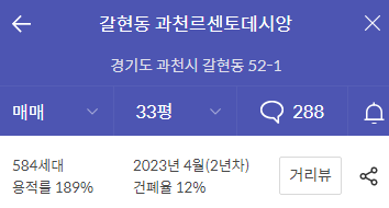 과천이긴 한데 우리가 핵심으로 생각하는 과천 내는 아니고 과천지식정보타운, 일명 '과천 지정타'에 위치한 아파트다.