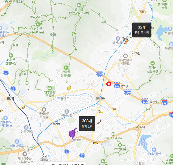 확실히 인덕원역이 가깝다보니 지하철로 이동하는 경로 위주라 교통체증 이슈는 적을 것 같다.