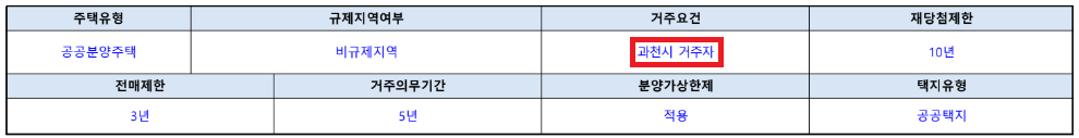 대신 해당 건은 모두 과천시 거주자만 청약 신청이 가능하다.