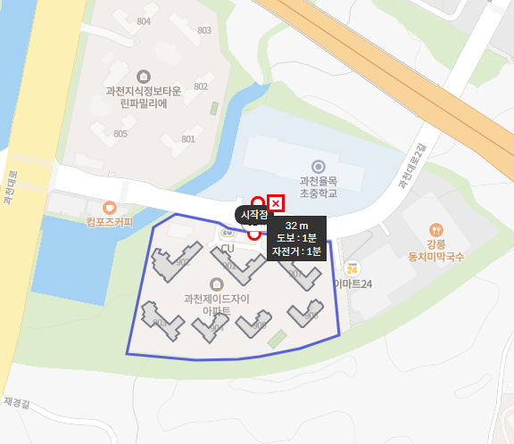 과천제이드자이도 과천 지식정보타운에 해당하는 단지다. 대신 지정타의 남쪽 끝에 위치한 단지라 인덕원에 훨씬 가깝다.