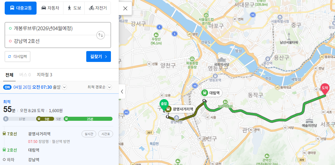 그래도 지하철 한 번만 환승하면 되고 비교적 가는 방식이 단순하다.
