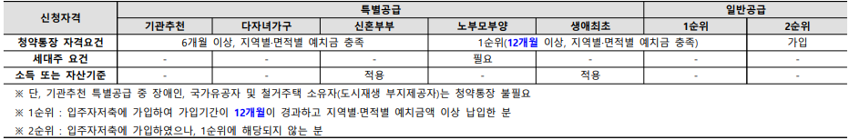 특별공급과 일반공급에 따라 소득 및 자산기준이 적용되기도 하니 참조해야 한다.