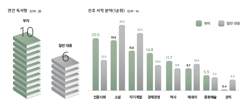 부자가 일반대중에 비해 연간 독서량이 많았다.