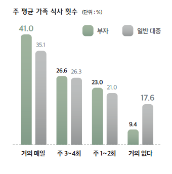 부자는 거의 매일 가족과 식사 시간을 보내며, 일반 대중은 5명 중 1명꼴로 거의 가족과 식사를 하지 않았다.