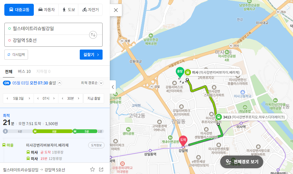 잠실로 출퇴근하는 경우나 강동구 부근에 있는 특정 회사들까지는 괜찮다고 생각된다.