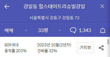 총 809세대의 아파트라 단지 규모는 적당히 크고 좋다. 2023년 10월에 입주를 시작한 신축 아파트고, 용적률은 201%, 건폐율은 32%다.