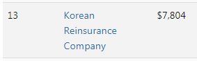 코리안리는 글로벌 13위에 해당하는 재보험사다.