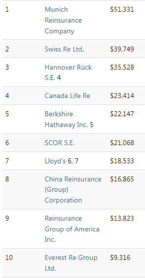 재보험 사는 글로벌하게 여러 곳이 있는데 그중에서 가장 큰 순서 Top 10을 알아보도록 하자.