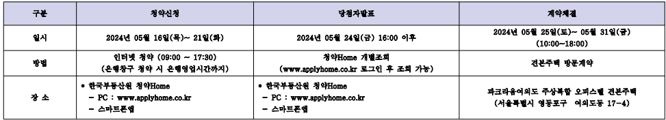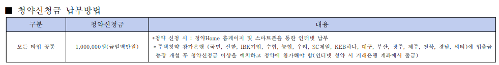 일반 아파트 청약과 다르게 청약신청금을 납부해야 하며 파크라움 여의도는 100만 원을 내야 한다.