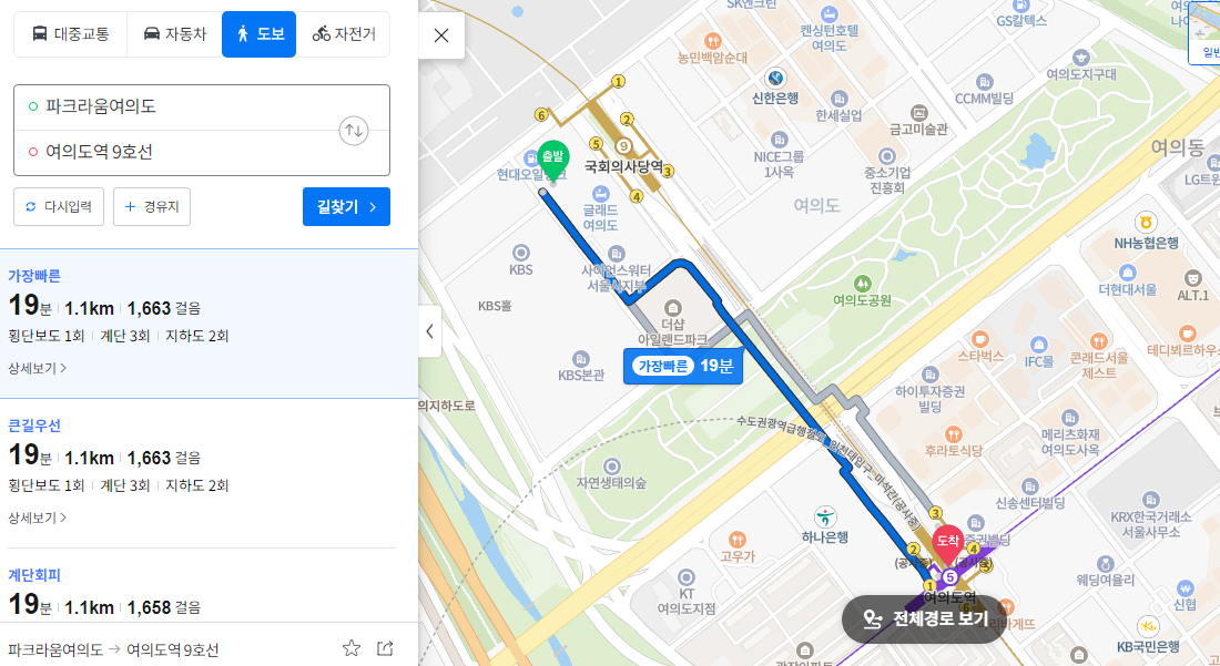 동여의도 같은 경우에 걸어가는 25분이 멀면 지하철을 타도 되긴 한다.