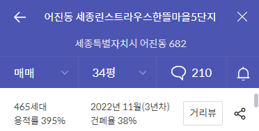 총 465세대의 아파트고 2022년 11월에 입주한 신축이다. 세종이야 특히 이쪽은 다 신축이라 특별하다고 보긴 어렵다.