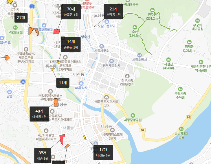 정부세종청사 중앙동이랑도 가까워서 정부청사 근무하는 사람이라면 더할 나위 없는 위치다.