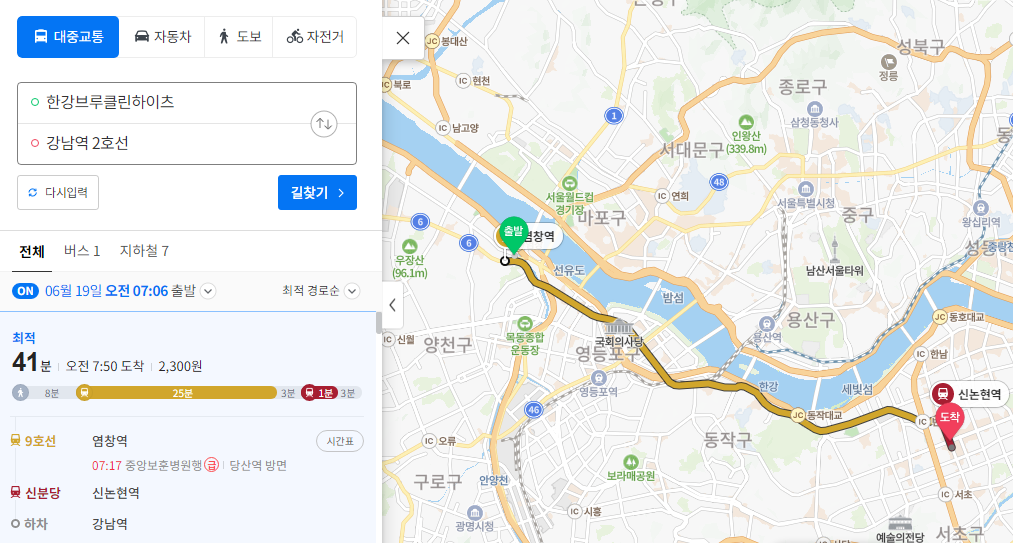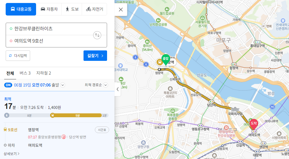 주요 업무지구인 여의도까지는 약 20분 정도면 통근이 가능하다.