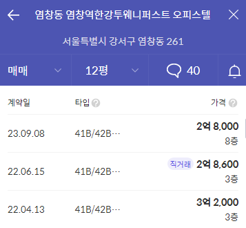 근처에 있는 한강뷰가 나오지 않는 3년 차 오피스텔의 경우에도 동일 전용면적 기준 가격이 3억 원 정도다.