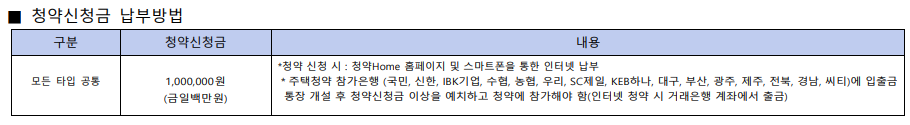 참고로 오피스텔/도생은 청약신청금이 있는데, 백만 원을 내야 한다. 물론 청약에 당첨되지 않으면 돌려준다.
