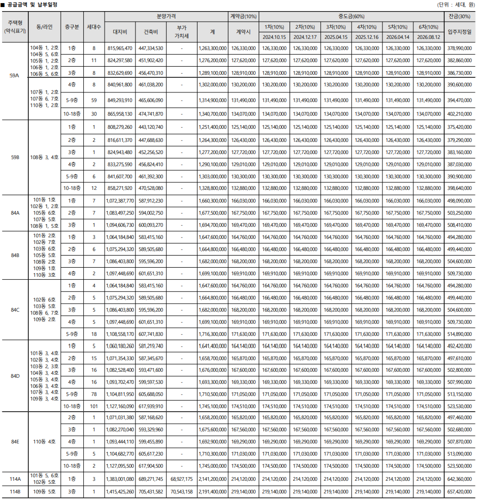 분양가는 전용 59 타입 (25평)은 분양가가 약 13억 원이다.