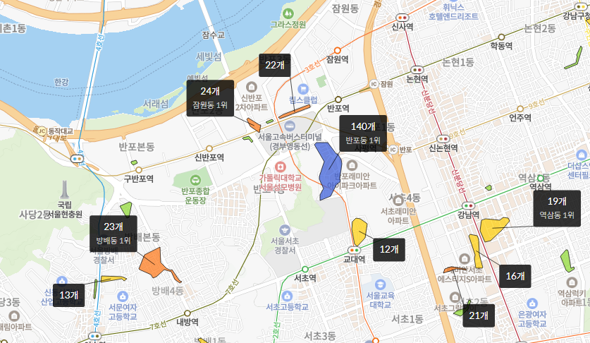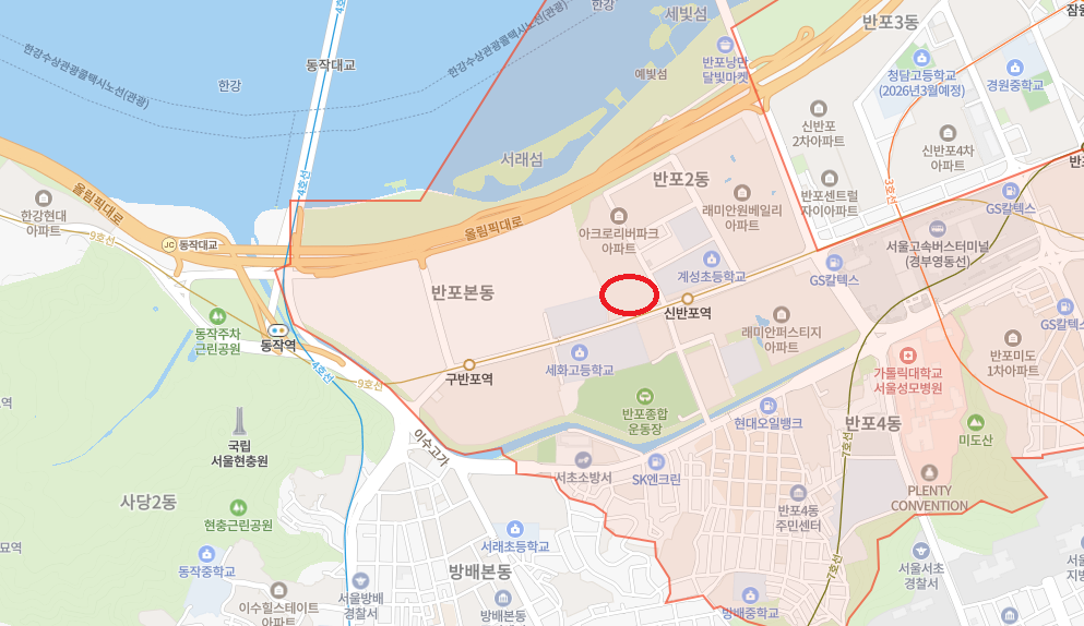 지하철역 9호선 신반포역이 가장 가깝다.