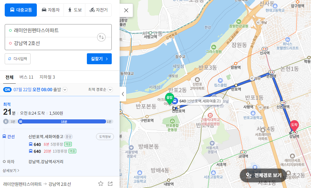 * 반포 래미안 원펜타스 교통