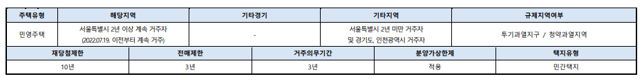 전매제한은 3년, 거주의무기간도 3년이다.