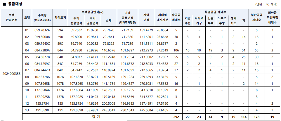 특별공급은 114세대, 일반공급은 178세대다.